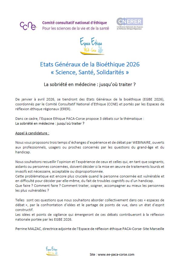 Inscription gratuite mais obligatoire : https://www.eventbrite.fr/e/3eme-webinairethic-des-comites-dethique-paca-corse-tickets-1975976976328?aff=oddtdtcreator