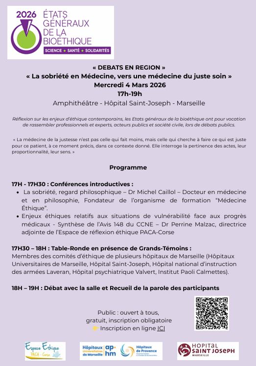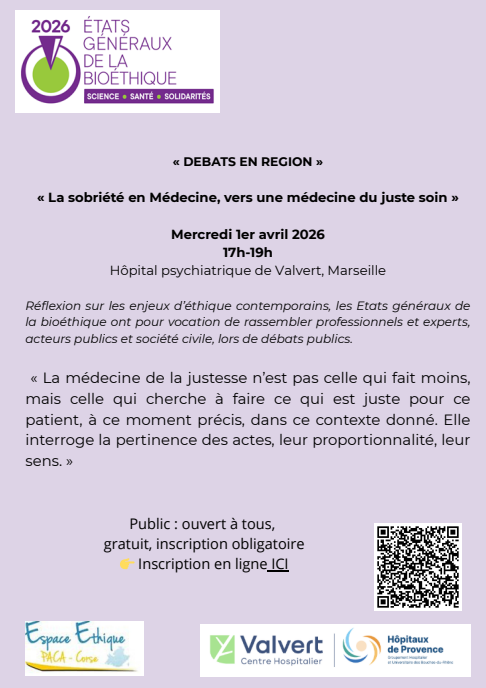 Inscription gratuite mais obligatoire : contact@espace-ethique-azureen.fr