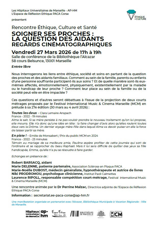 Programme et inscriptions gratuites mais obligatoires : https://fr.ap-hm.fr/agenda/festival-ethique-sante-cinema